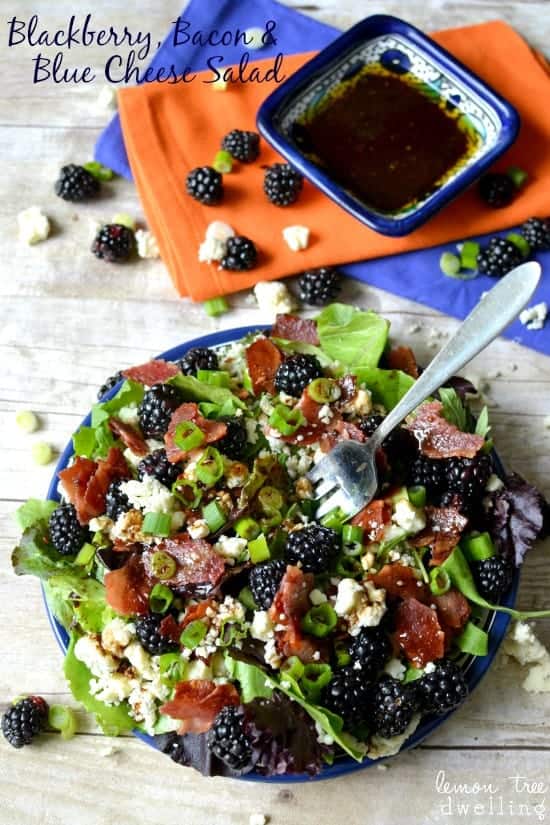You’ll LOVE this Blackberry Bacon Blue Cheese Salad! A bed of mixed greens topped with fresh blackberries, crispy bacon, blue cheese, and a drizzle of honey balsamic vinaigrette, it’s simple AND delicious!