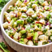 And as much as I love a good apple cake or apple crisp or caramel apple dip… the truth is that apples are delicious in savory recipes, too. Recipes like this Apple Brie Salad or Apple Wedge Salad OR this fresh Apple Salsa!