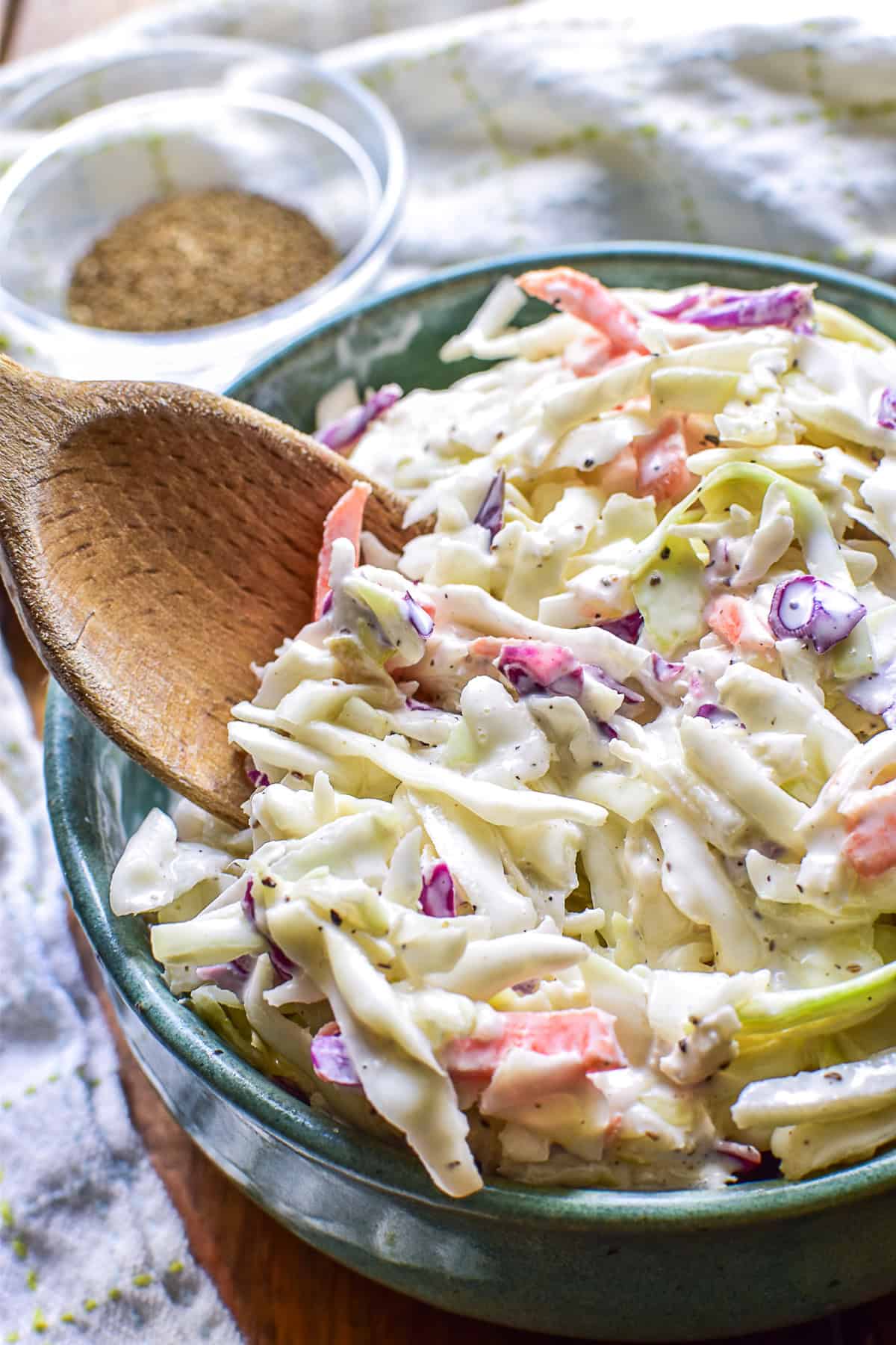 But. If you’re looking for the absolute BEST Creamy Coleslaw… this recipe is IT! It’s perfectly creamy with the right balance of acidity, it has just a hint of sweetness, and it has the classic hint of celery seed I LOVE in a good coleslaw.