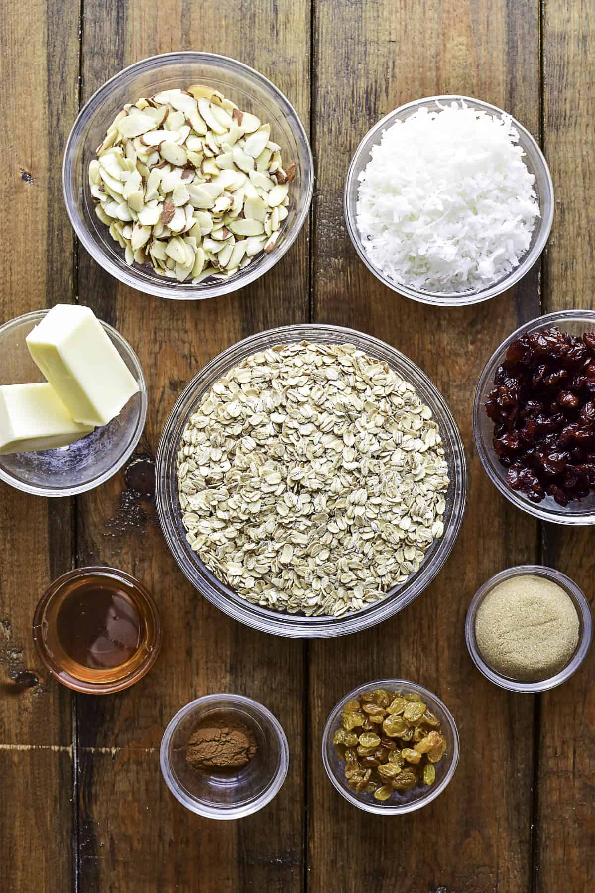 Oats – Oats are the main ingredient and base of this recipe. I used 3 cups old fashioned oats, which result in a light, flaky texture. For a denser, nuttier texture, substitute steel cut oats.