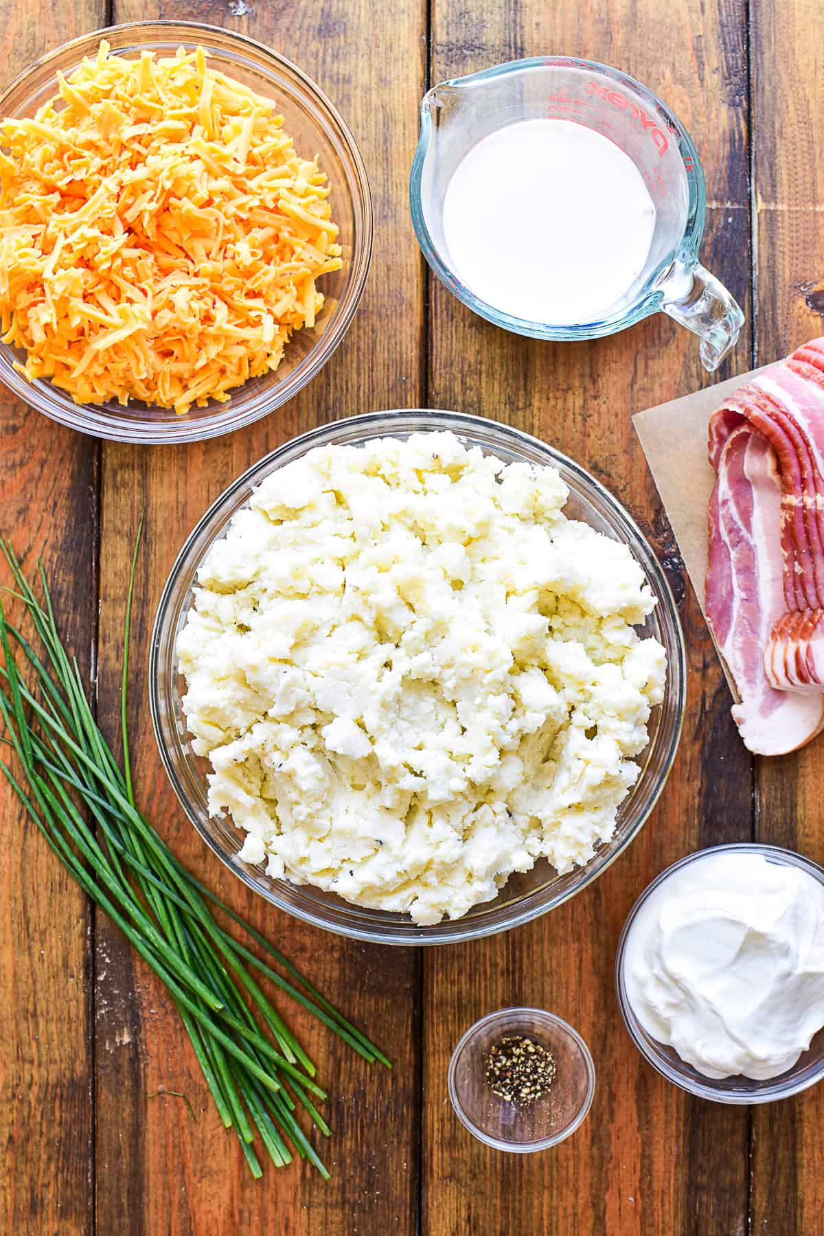 Made with mashed potatoes, sour cream, cheddar cheese, crispy bacon, and chopped chives, it’s packed with amazing flavor and has the most delectably creamy texture. Plus… it’s a great way to use up leftovers!
