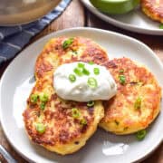 Perfect Potato Pancakes… made with leftover mashed potatoes! These pancakes are crispy on the outside, fluffy on the inside, and delicious as an appetizer or side dish!