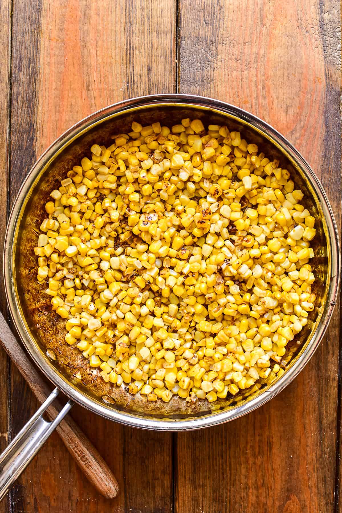 I like to char corn to use in any recipe that calls for grilled corn. Why? Because it’s so easy to make on the stovetop AND you can use fresh, canned or frozen corn! Simply heat a small amount of olive oil in a skillet over high heat, add the corn, and sauté until browned. Be sure to stir it often to avoid burning.