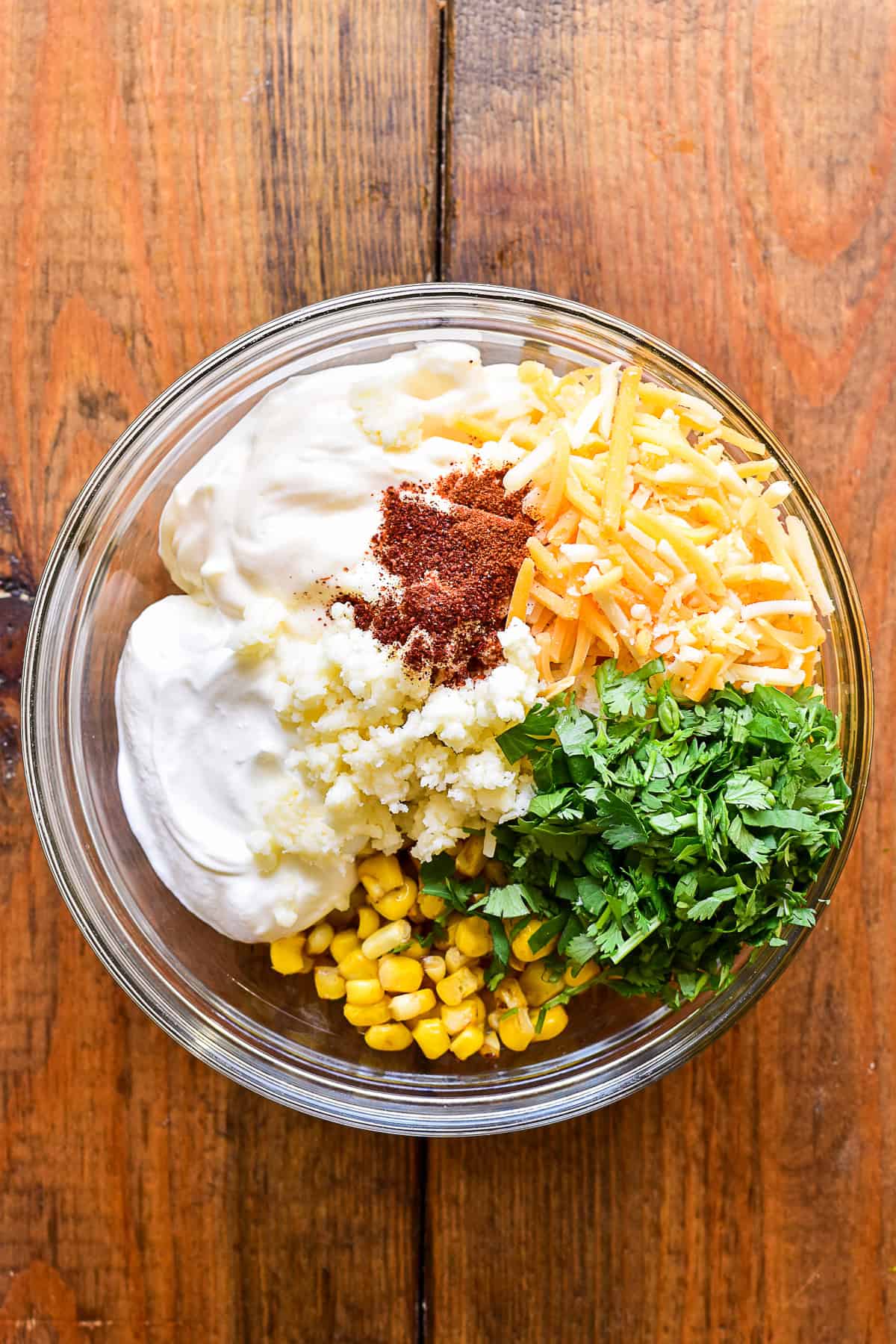Combine the ingredients. In a large mixing bowl, combine the corn with all the other ingredients and mix well.