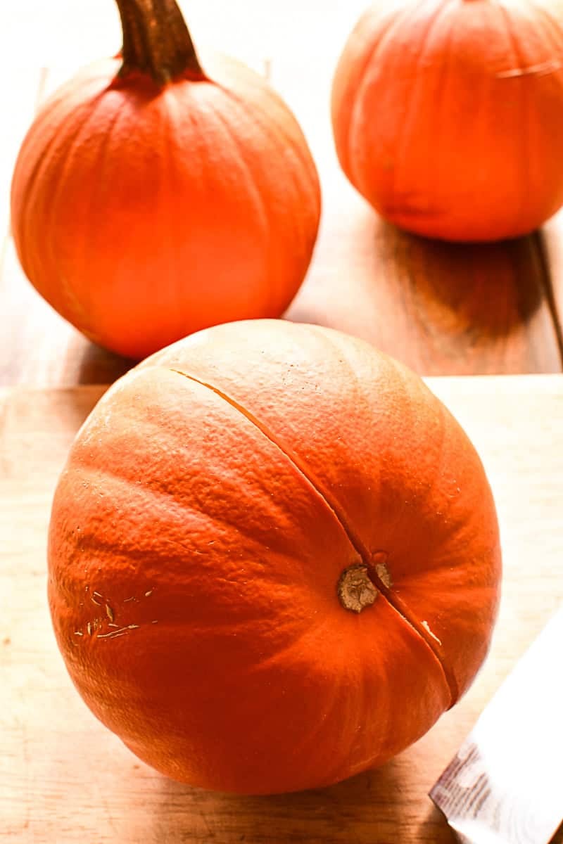 I have to be honest… I’ve always seen them as more of a holiday decoration than something to actually bake with. Because who wants to go through the hassle of working with fresh pumpkin when there’s canned pumpkin down the next aisle?