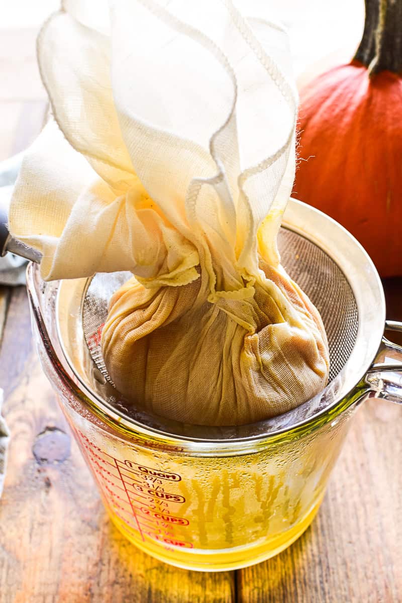 Cheesecloth – Cheesecloth is an essential piece of equipment, necessary for straining excess liquid from the pumpkin puree. Pro tip: cheesecloth can be washed by hand and re-used!