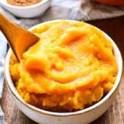 Pumpkin – The best kind of pumpkin to use for this recipe is a pie pumpkin, also known as a sugar pumpkin. These can can be found in most grocery stores in fall. Pie pumpkins are small, dense, sweet, and perfect for baking. The texture and flavor is very different than carving pumpkins, which are more watery and have a stringy texture.