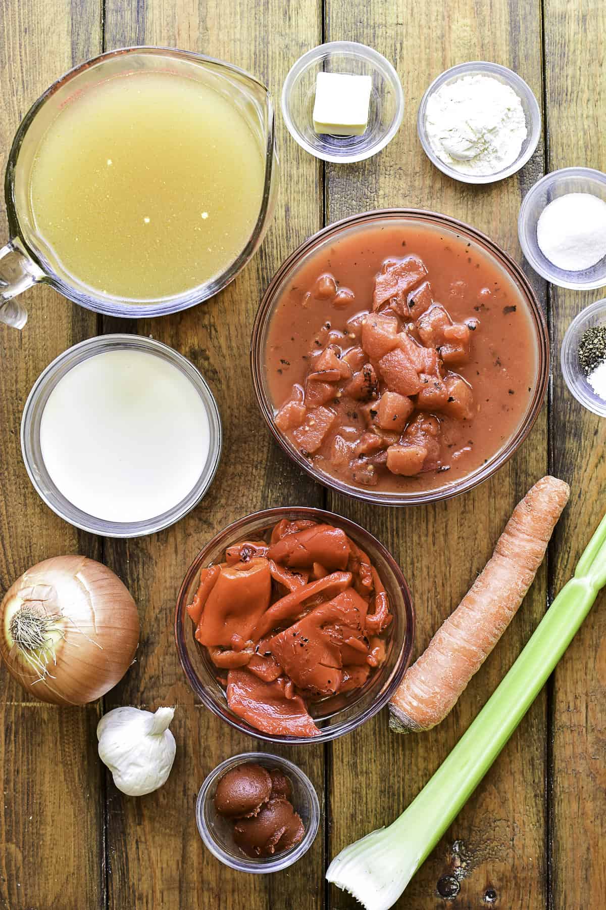 Half & half – Finally, half & half cuts the acidity and adds just a touch of creaminess to the soup. Substitute heavy cream for a thicker end result.