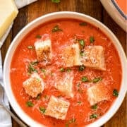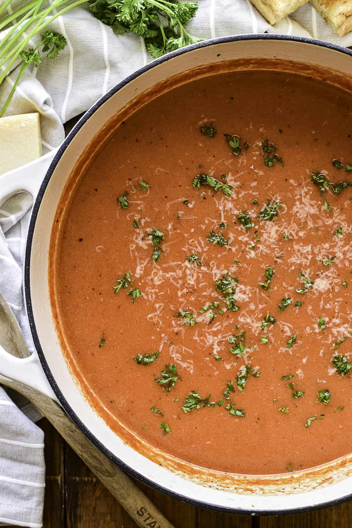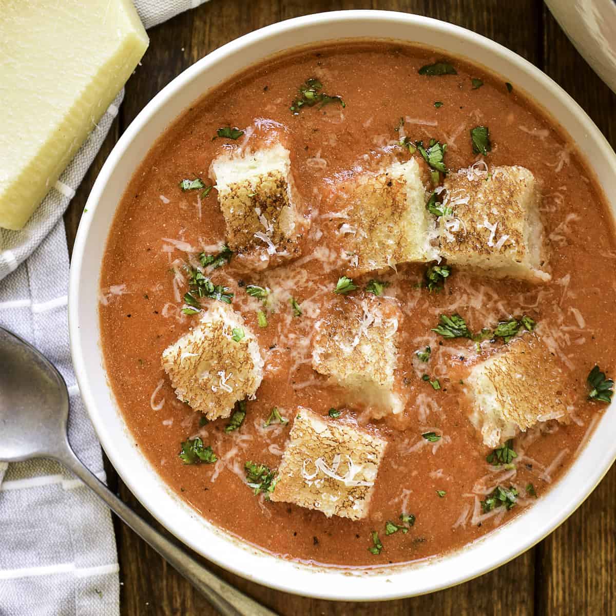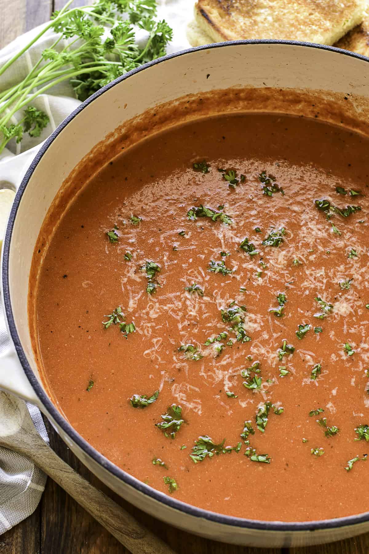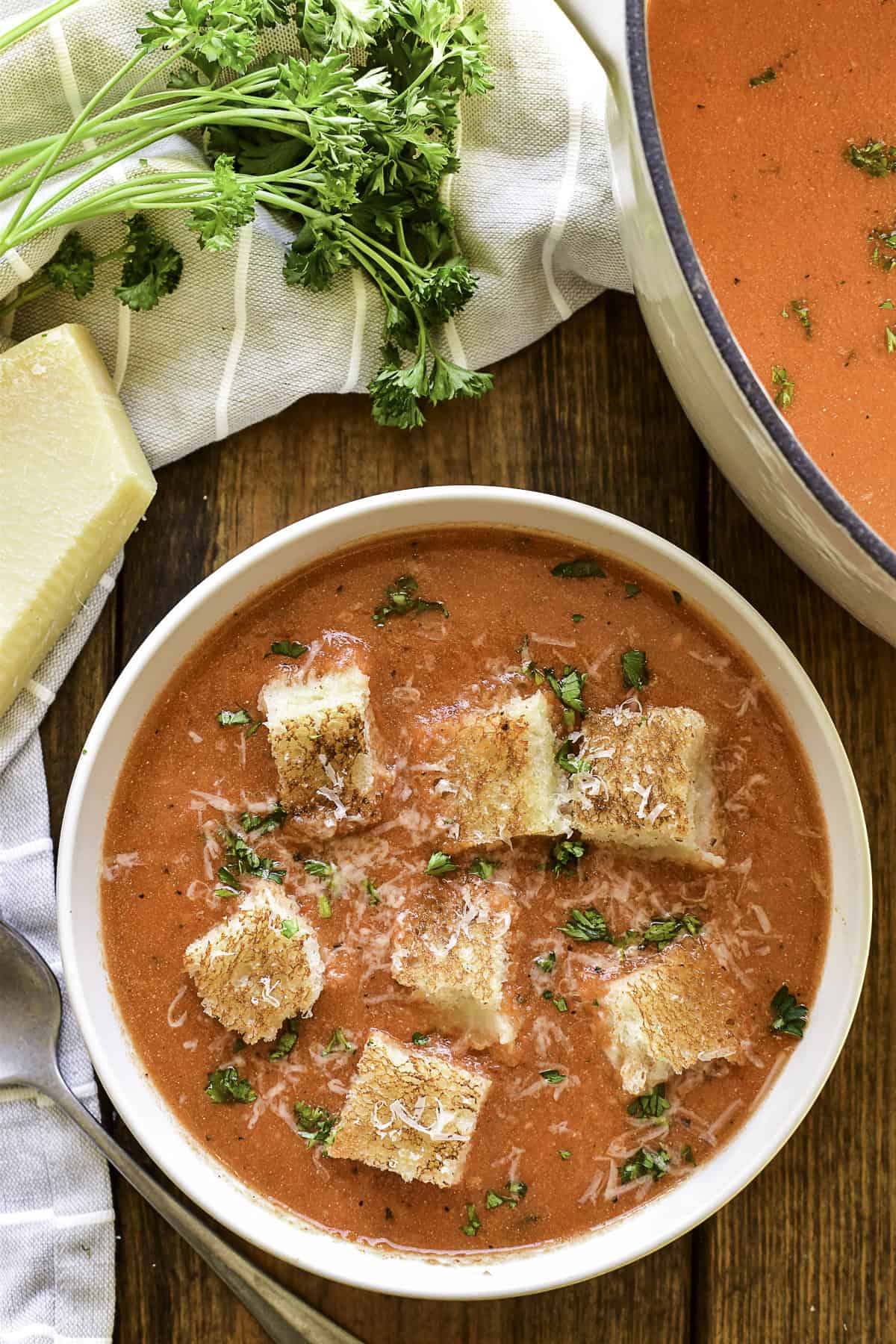 - Garnish with grilled cheese croutons, fresh Parmesan, and fresh parsley or basil as desired.