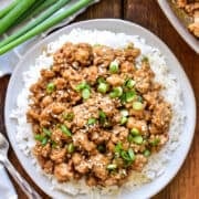 An easy twist on Sesame Chicken that’s perfect for busy weeknights! This recipe starts with ground chicken and a sweet & savory sauce and is garnished with sesame seeds and sliced green onions. Delicious over rice or all on its own!