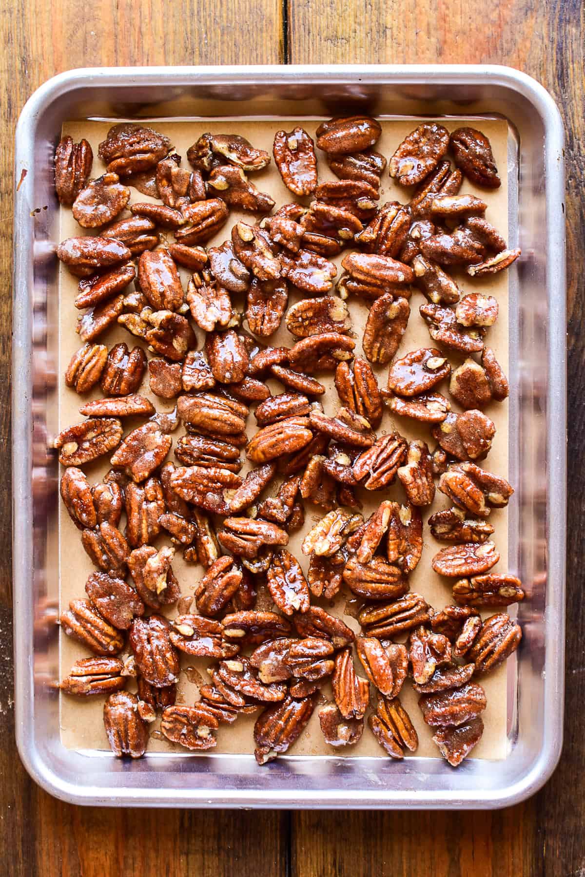 Cool & break apart. Set pecans aside to cool, then break them apart and transfer to a storage container. Store at room temperature for up to 2 weeks.