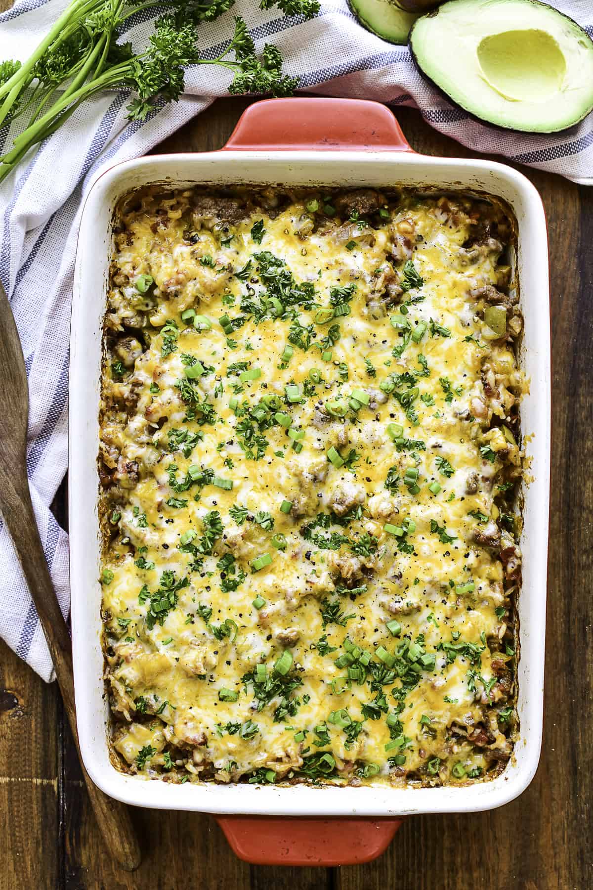 Cheese – 8 ounces shredded cheese gives this casserole delicious cheesy flavor. I used colby jack, but cheddar, Monterey jack, or pepper jack would also work well. For a more traditional flavor profile, substitute cheddar or mozzarella.