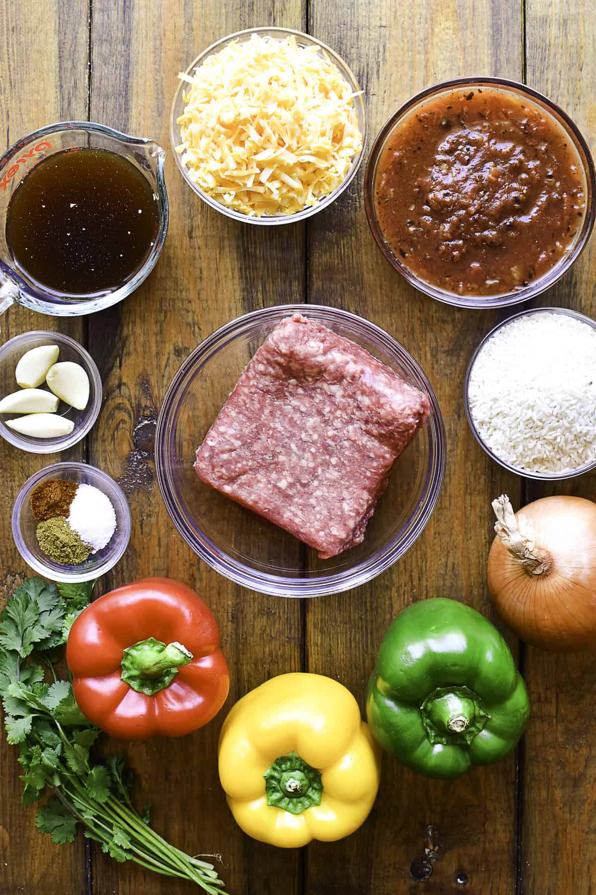 Ground beef – Ground beef is a key ingredient in stuffed peppers and the main source of protein. I used 1 pound of 85% lean ground beef. Substitute ground turkey, chicken or even chorizo.