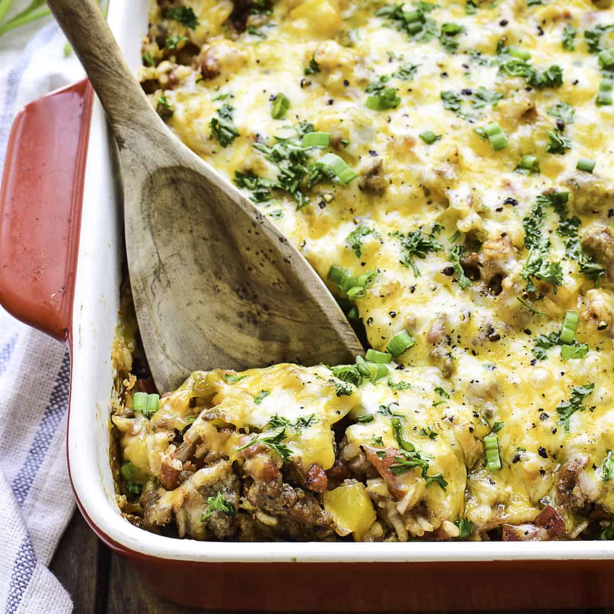 As an adult, I’ve definitely changed my tune. I LOVE a good stuffed pepper (Pizza Stuffed Peppers, anyone?) But my kids, not so much. Which is what I now love so much about this Stuffed Pepper Casserole.