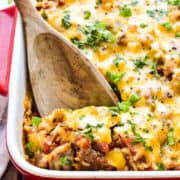 All the flavors of stuffed peppers… without all the work! This Stuffed Pepper Casserole is packed with ground beef, bell peppers, diced tomatoes, white rice, and plenty of cheese. A delicious twist on a classic that’s 100% kid-approved!