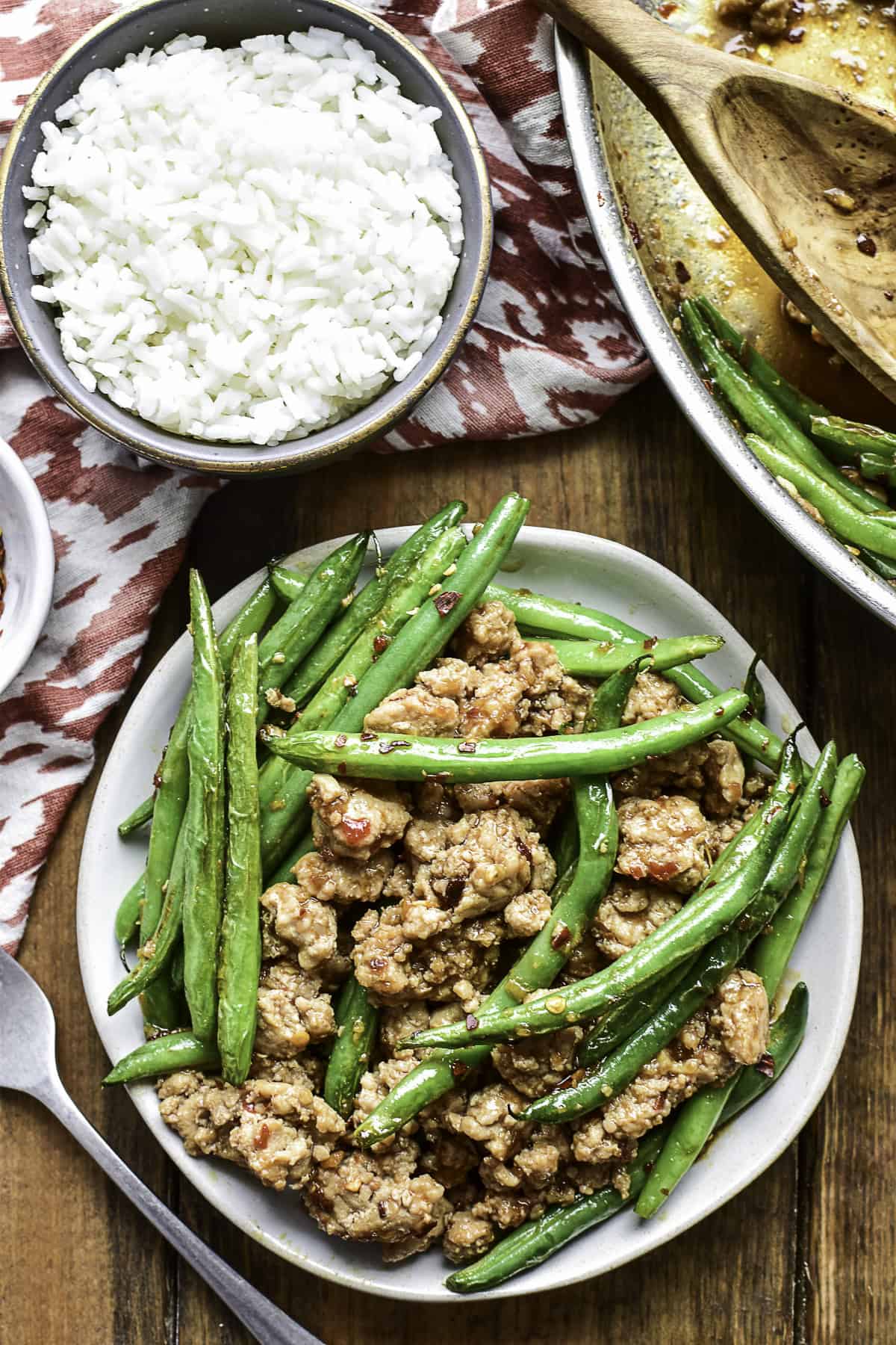 So I decided to make them (finally) and turn them into a stir fry. With ground chicken! And the end result – this Szechuan Green Bean Stir Fry – is everything I hoped and knew it would be. Spicy, savory, crunchy, sweet, and definitely crave-worthy.