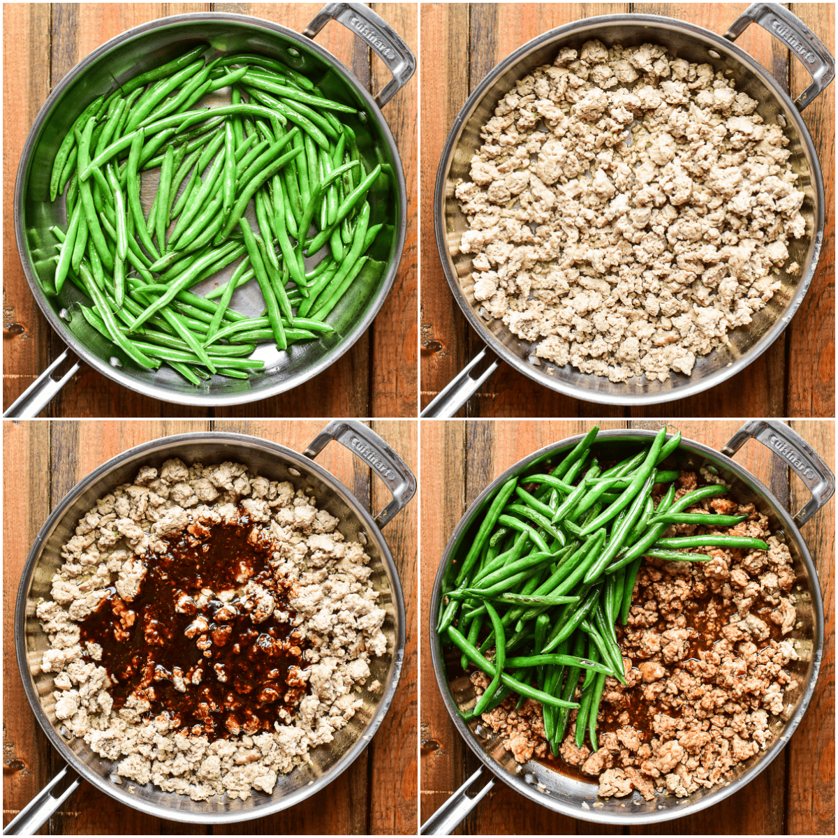 - Add the green beans back to the skillet and stir to coat. Continue cooking 2-3 minutes or until sauce begins to thicken.