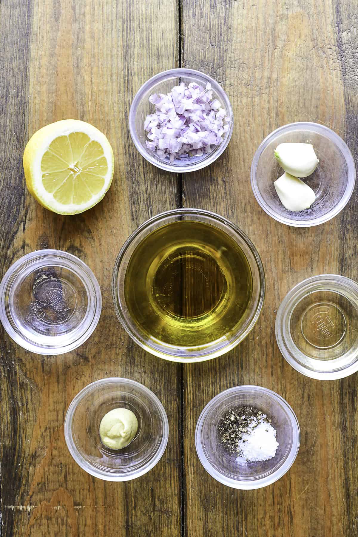 Lemon juice – Lemon juice is the acidic element in this vinaigrette and pairs well with the olive oil. I used 1/4 cup lemon juice. For the best flavor, use fresh squeezed lemon juice. (Bottled will work in a pinch!)