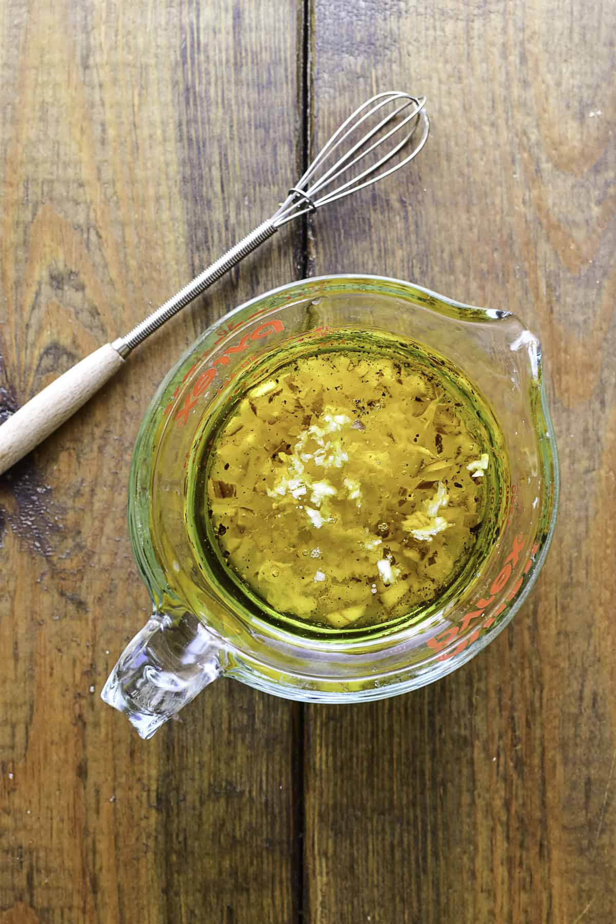 Olive oil – Olive oil is the main ingredient in this recipe and creates the base of the vinaigrette. I used 1/2 cup extra virgin olive oil for rich, intense flavor.