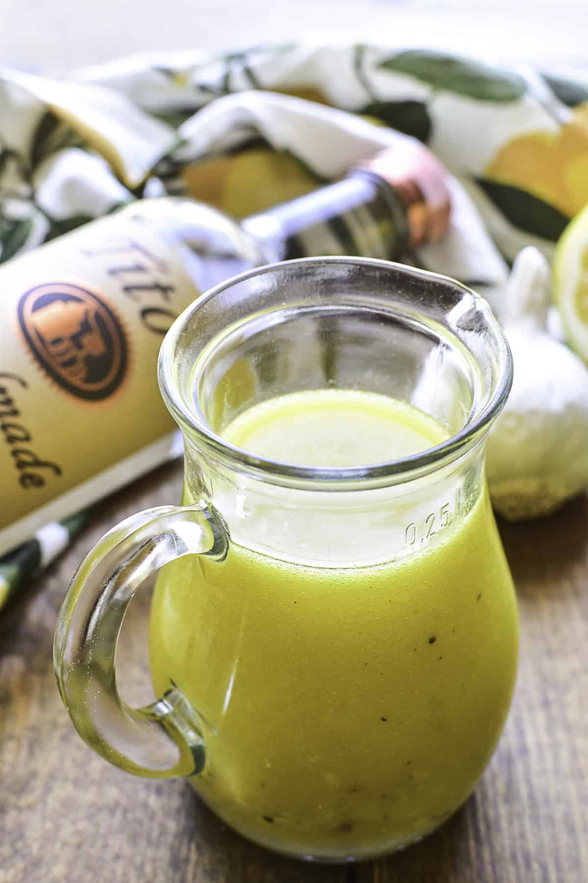Lemon juice – Lemon juice is the acidic element in this vinaigrette and pairs well with the olive oil. I used 1/4 cup lemon juice. For the best flavor, use fresh squeezed lemon juice. (Bottled will work in a pinch!)